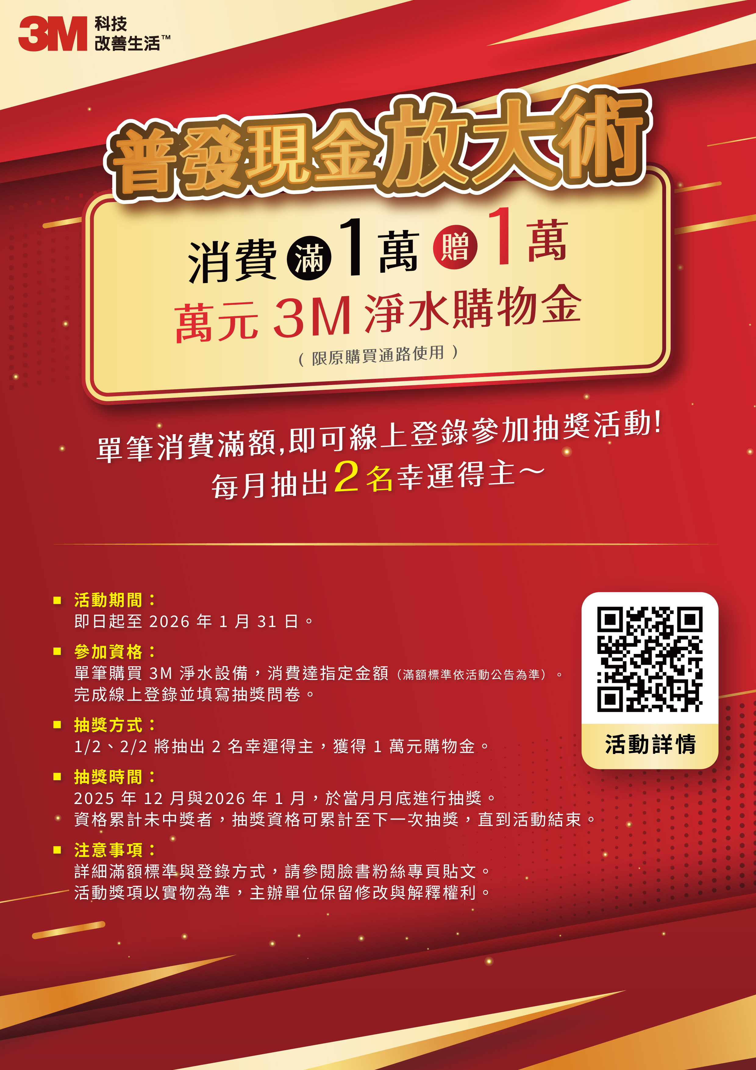 普發現金放大術 , 消費滿1萬-送1萬《萬元 3M 淨水購物金》