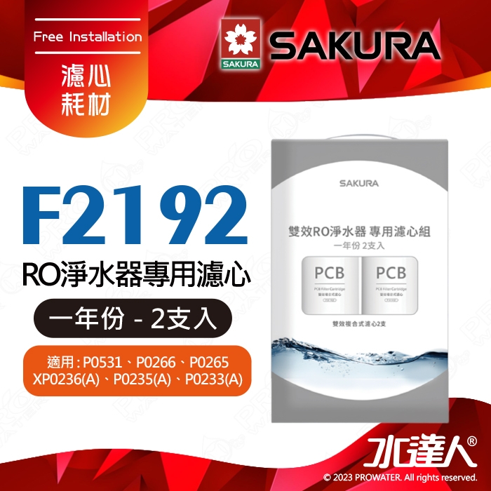 首頁 > 濾心耗材專區 > SAKURA 櫻花耗材系列 > 【SAKURA 櫻花】F2192 RO淨水器專用濾心 一年份《2支入》 ★適用P0233/P0235/P0233A/P0235A★適用P0531/P0265/P0266★第一道F0162《2支入》-