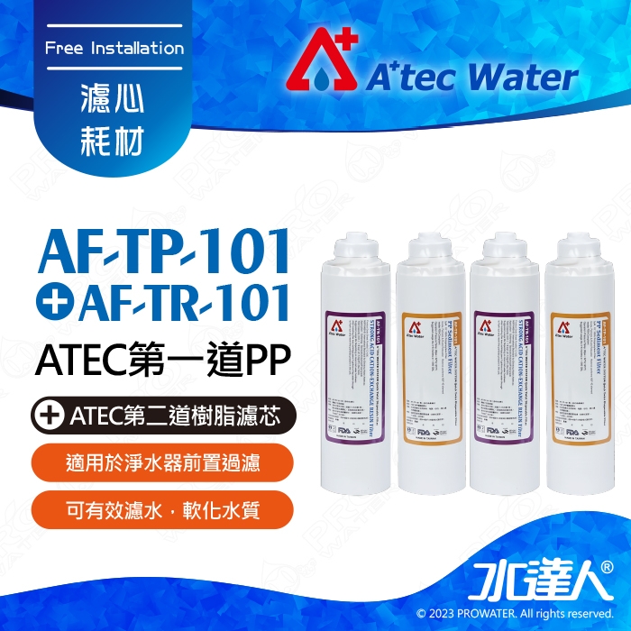 【水達人】ATEC 第一道初過濾濾芯/抗菌PP濾心(AF-TP-101) 2支+ 第二道樹脂濾芯/食品級樹脂濾心(AF-TR-101)2支