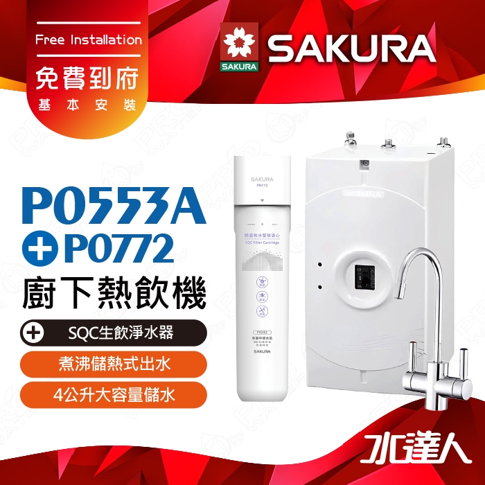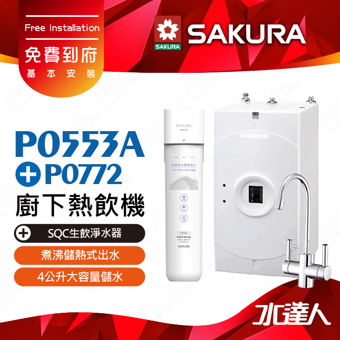 【SAKURA 櫻花】 P0553A 廚下熱飲機/雙溫飲水機│塔配P0772除菌軟水雙效過濾淨水器(單管過濾)│煮沸儲熱式出水│防燙無鉛龍頭│中硬水地區適用│除菌軟水配方│專利濾心卡榫設計│免費到府安裝