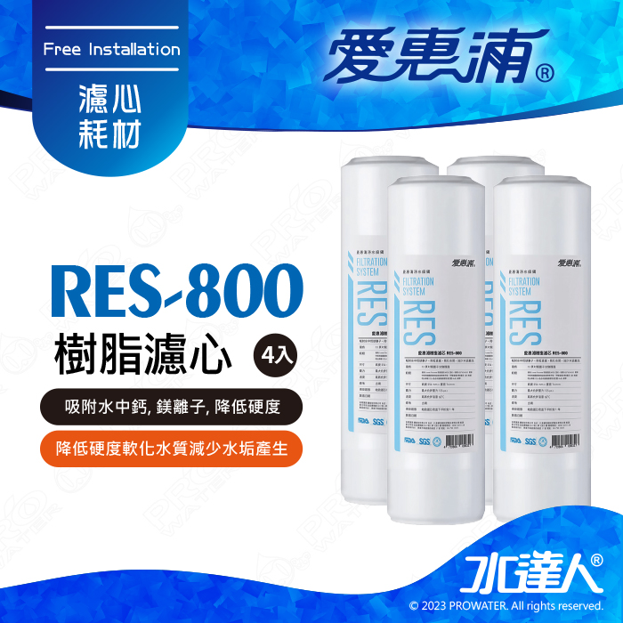 【愛惠浦】RES-800濾心│吸附水中鈣│鎂離子│ 降低硬度│軟化水質減少水垢產生│ 超值四入組