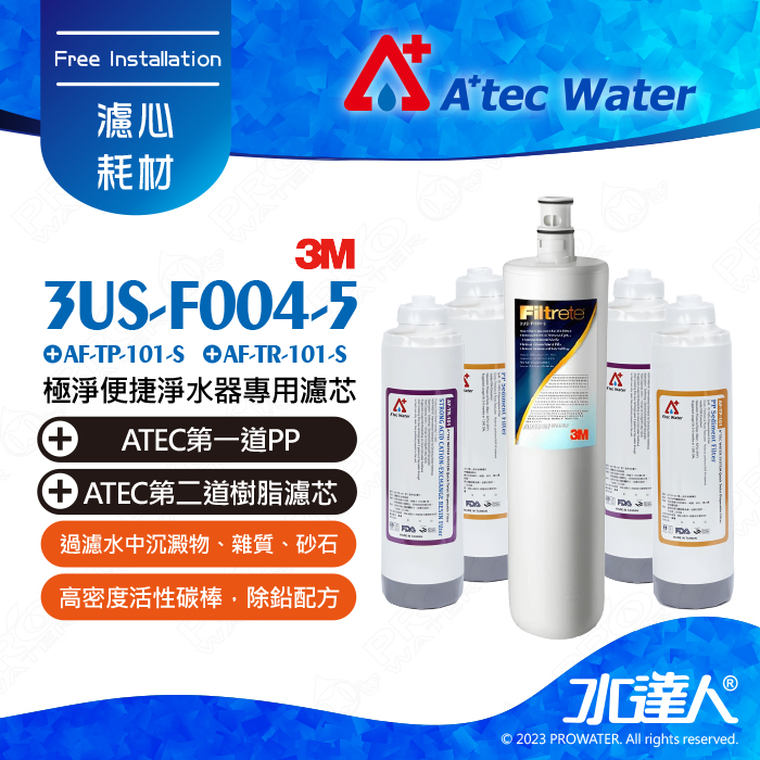 《3M》S004專用替換濾芯(3US-F004-5)+搭 ATEC AF前置雙道濾芯組(2組)│一年份濾芯組合