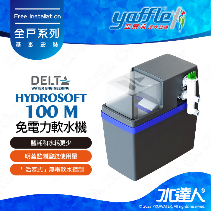 首頁 > 全屋設備 > Yaffle亞爾浦全屋淨水 > 全屋式軟水設備 > 【比利時Delta】HYDROSOFT 100 M 免電力軟水機(3公升單罐)│整體控制基於用水流量│體積精巧│安裝地點靈活│專用出水硬度調節鈕│無需用電│整體控制基於用水流量│免費到府基本安裝