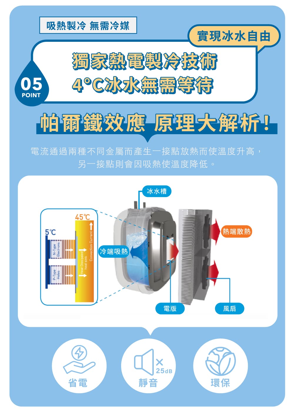 ★無冷媒壓縮機 , 4°C 冰水安靜隨享
