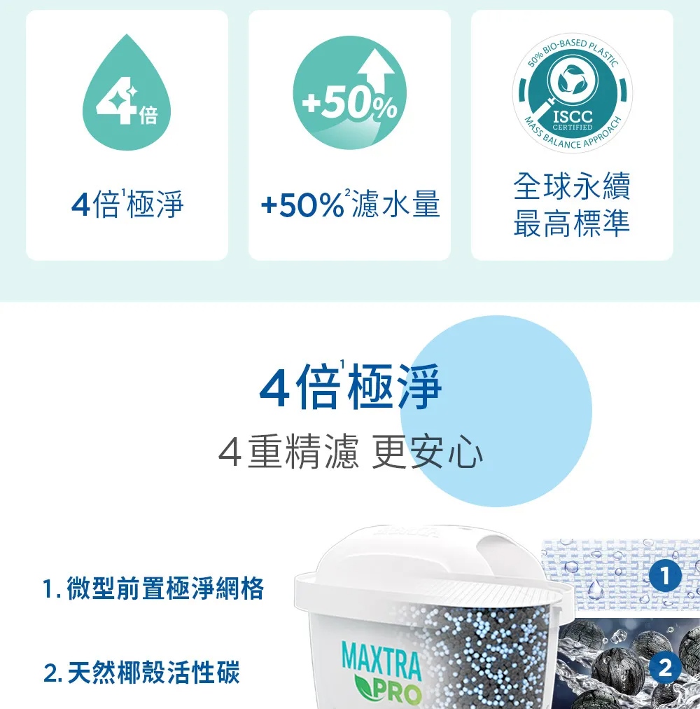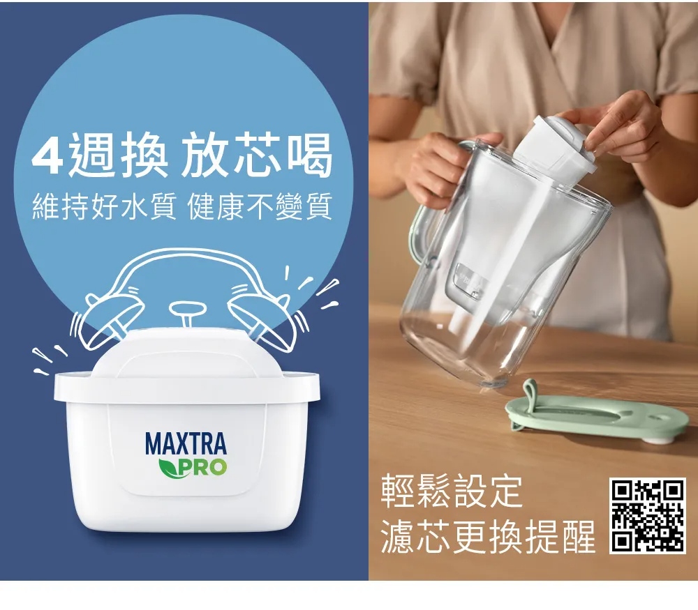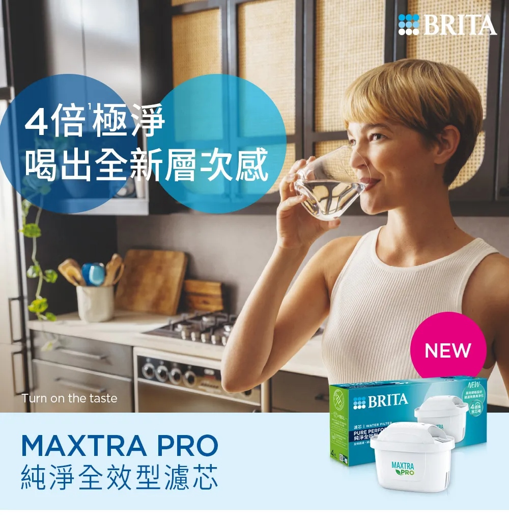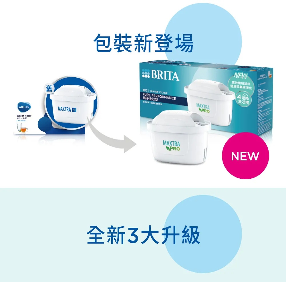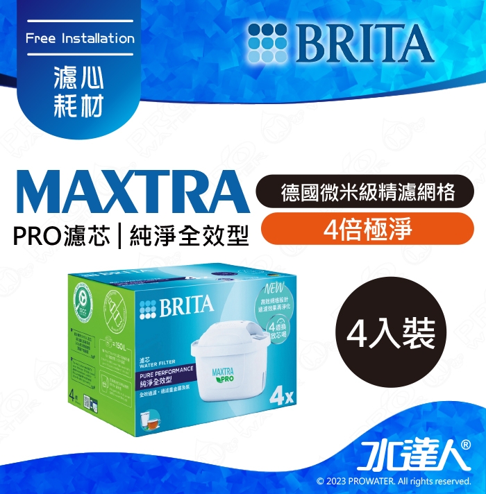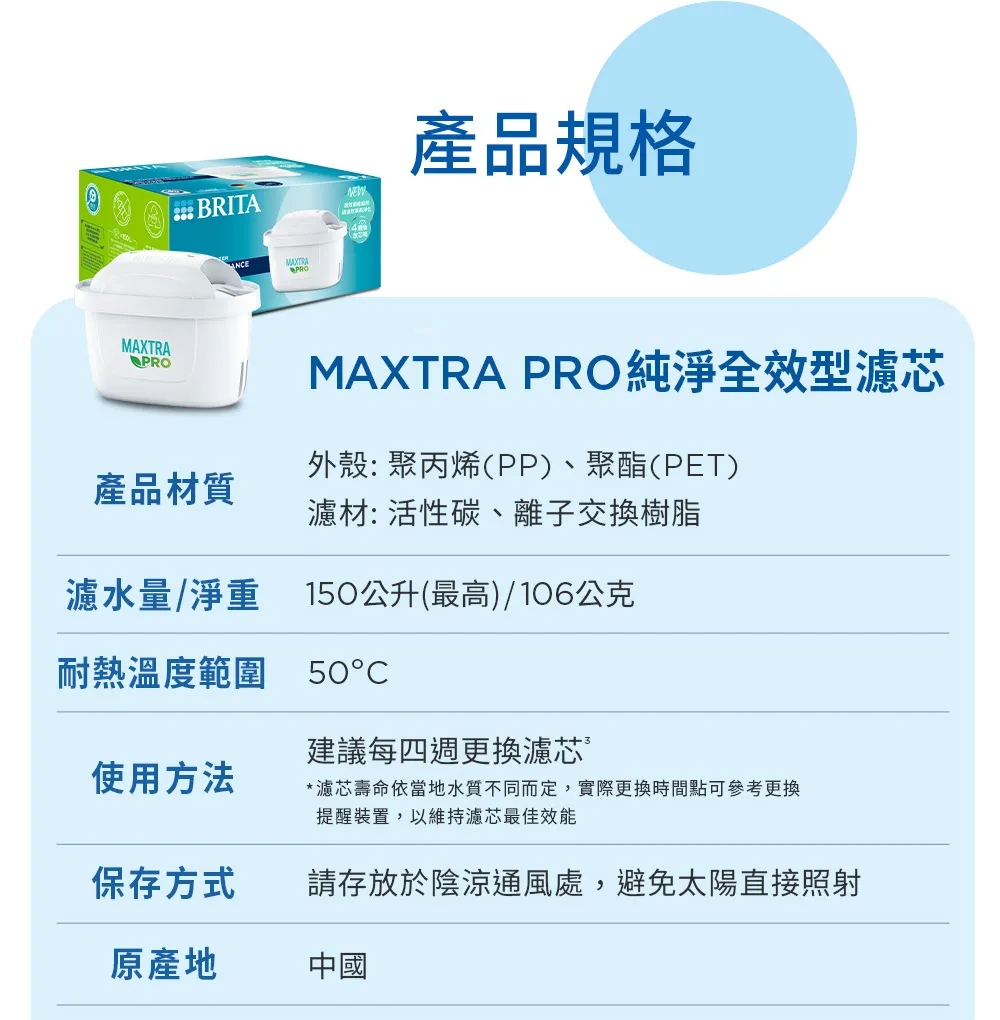 《德國BRITA》濾水壺專用濾芯│MAXTRA PRO濾芯│純淨全效型│4倍極淨│德國微米級精濾網格│濾除水垢、重金屬、氯、農藥及異味雜質│每四週更換濾芯│維持最佳水質