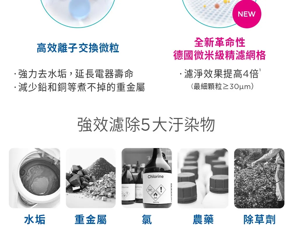 ★ 更永續!濾除水垢、重金屬、氯、農藥及異味雜質